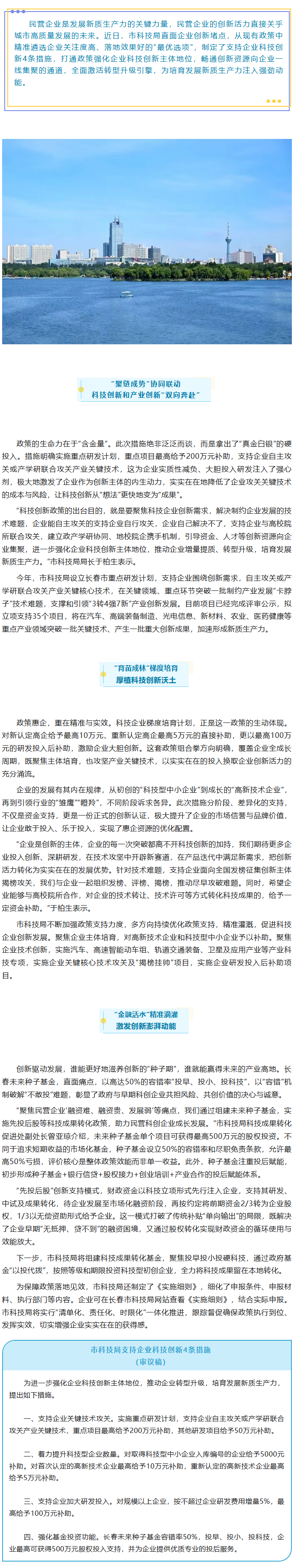 以“真金白银”激发企业创新活力——《市科技局支持企业科技创新4条措施》精准滴灌企业,赋能新质生产力发展