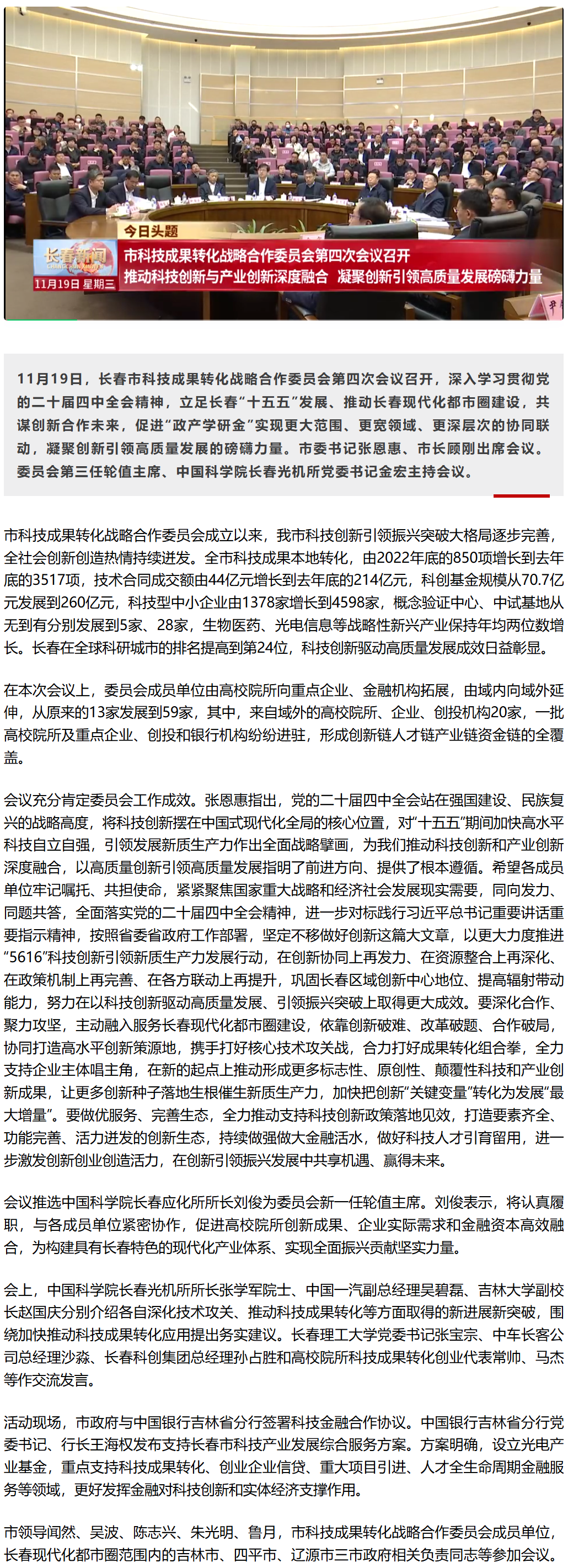 市科技成果转化战略合作委员会第四次会议召开 推动科技创新与产业创新深度融合 凝聚创新引领高质量发展磅礴力量