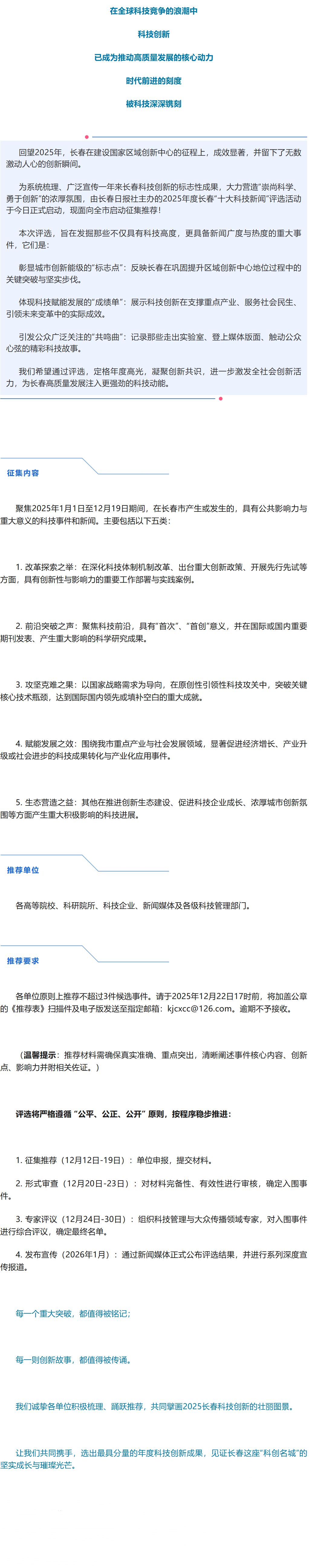 正式启动!2025年度长春“十大科技新闻”等你来荐!