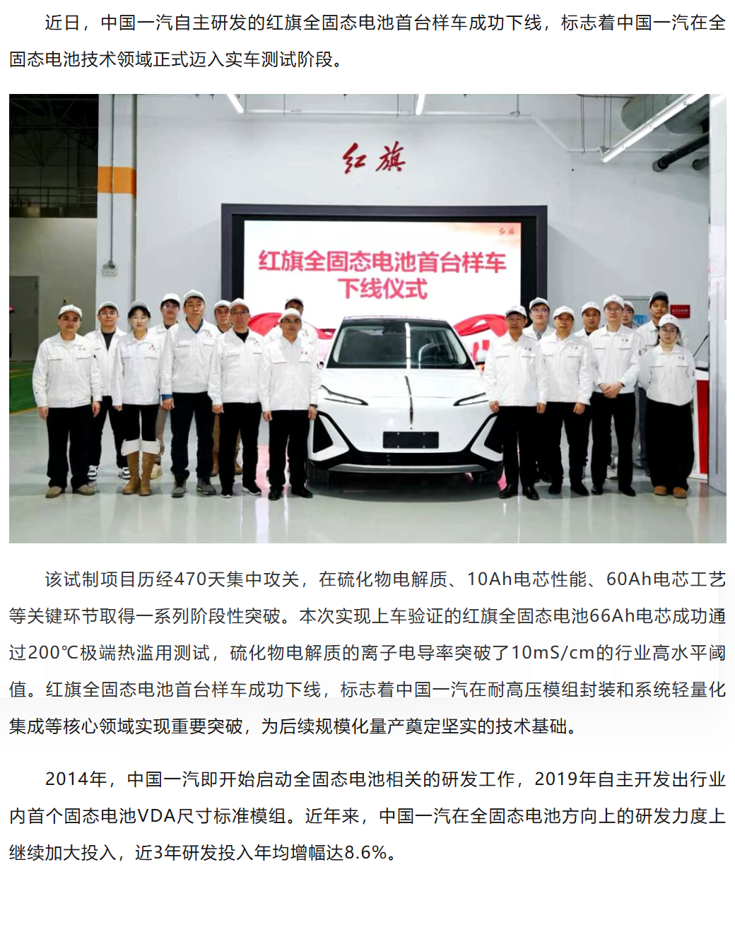 重要突破!红旗全固态电池首台样车成功下线