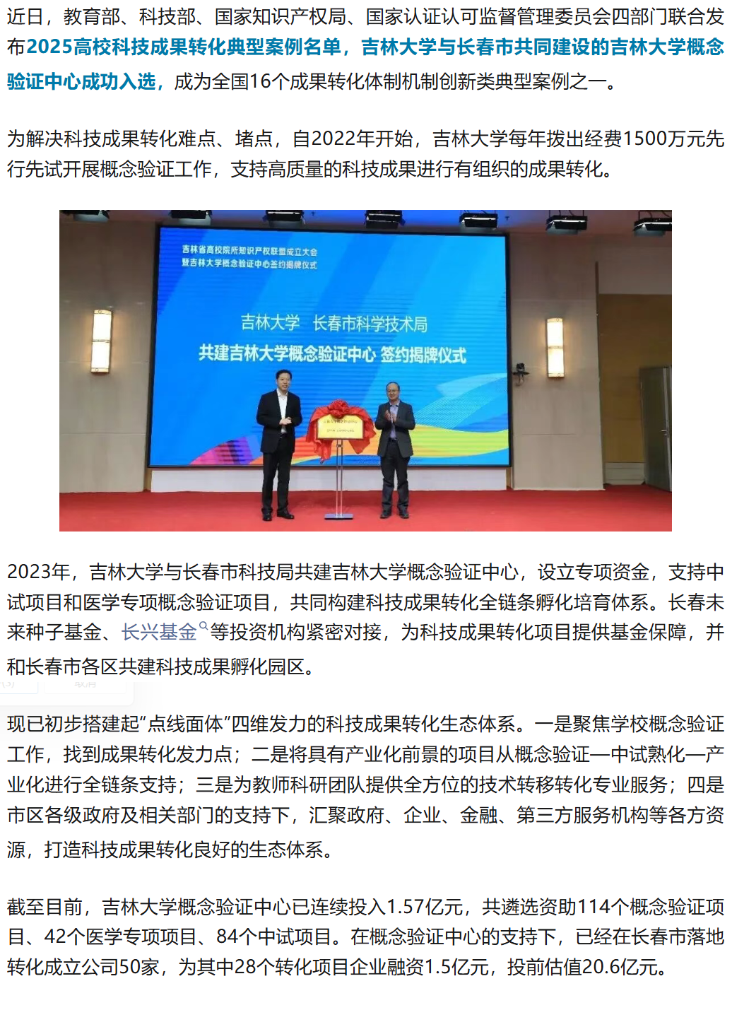 国家4部委点赞吉林大学与长春市共建科技成果转化模式