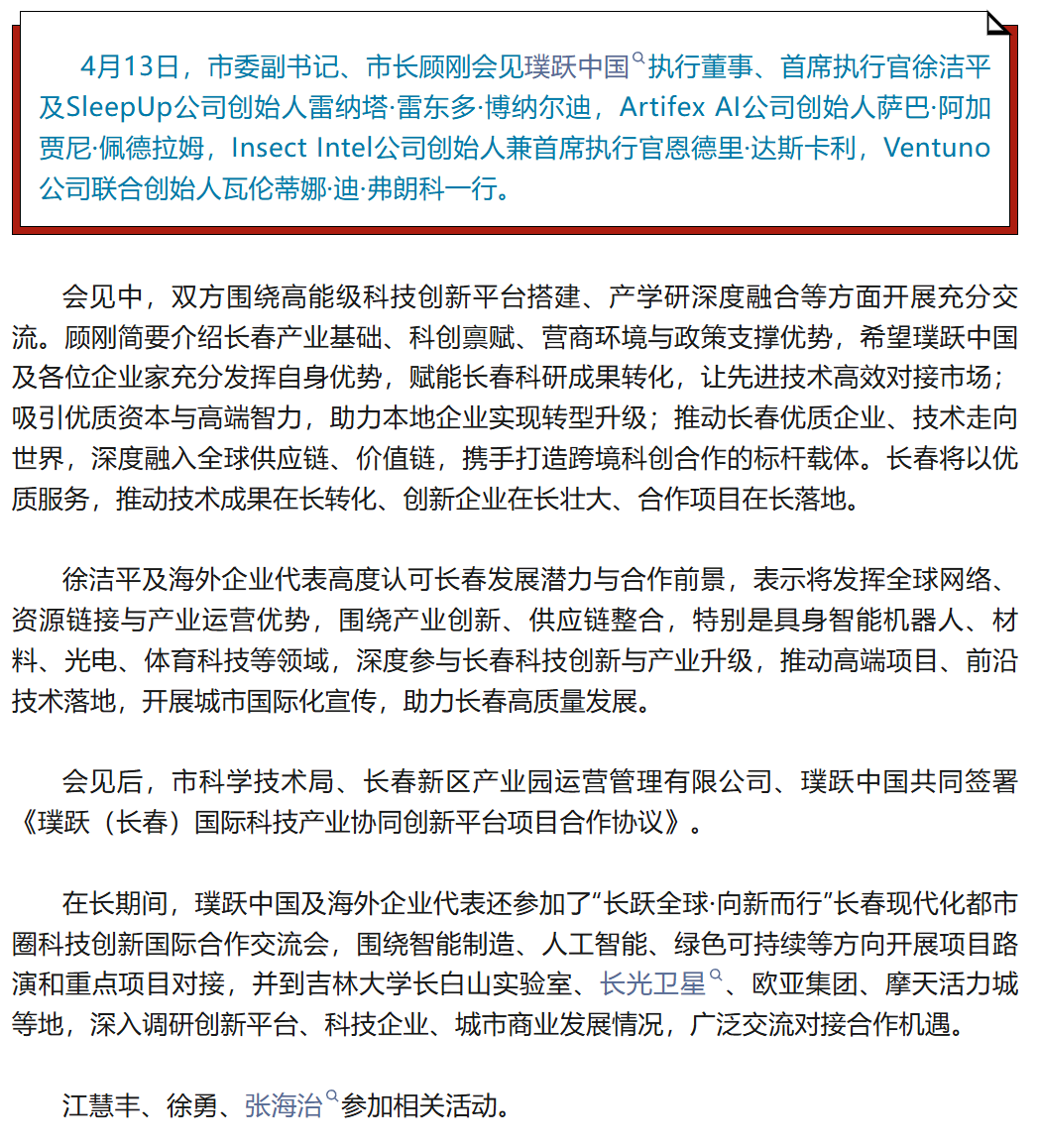 顾刚会见璞跃中国及海外企业代表一行,并出席签约仪式