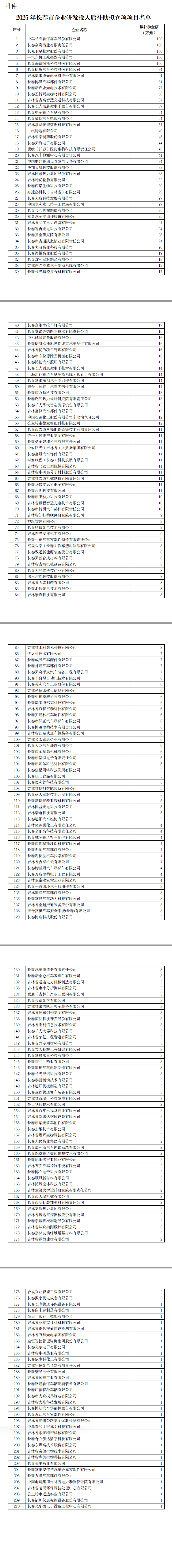 附件:2025年长春市企业研发投入后补助拟立项项目名单
